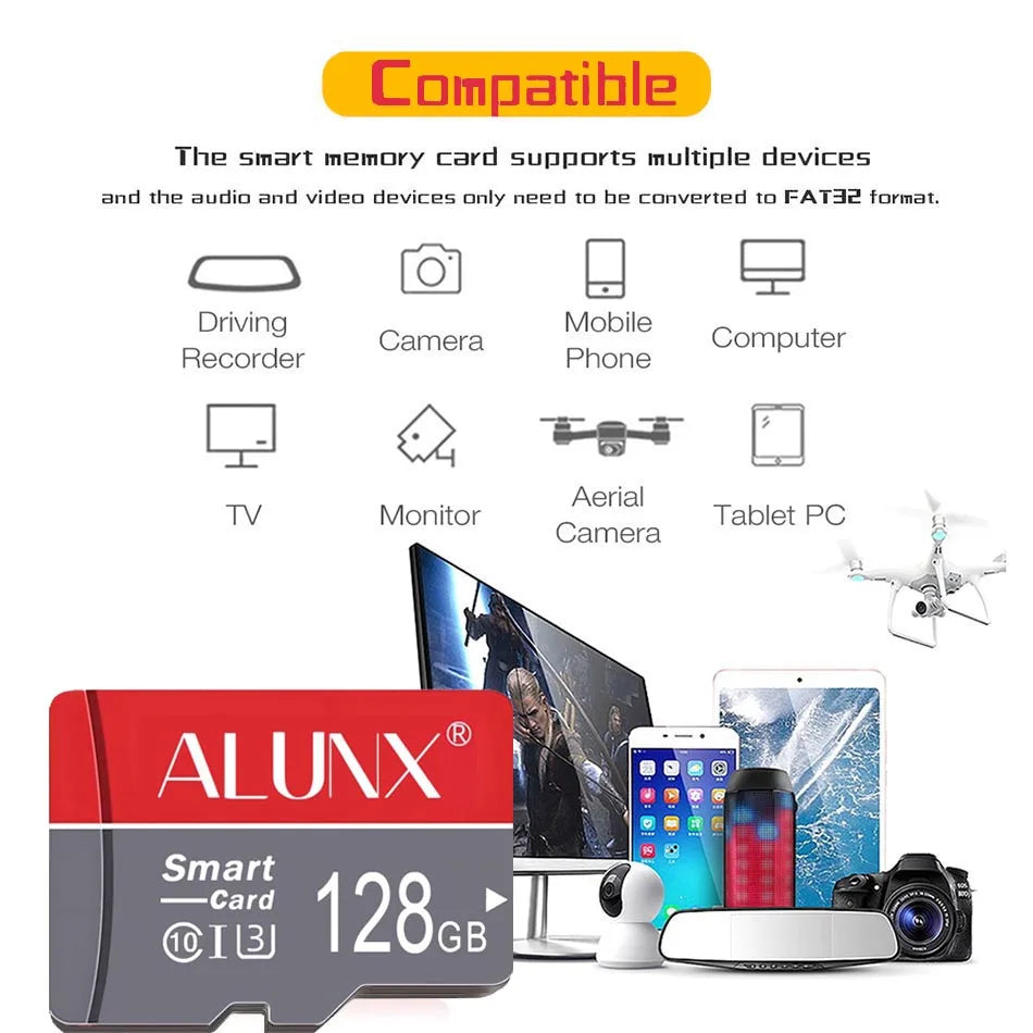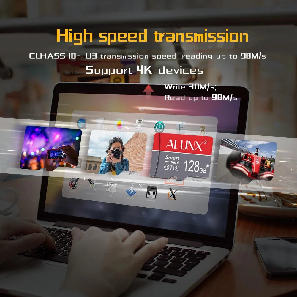 Cartão de memória microSD de alta performance com Classe 10, UHS-I U3, V10 e A1. Ideal para câmeras de segurança, smartphones, drones, dashcams e dispositivos digitais. Disponível em capacidades de 8GB a 128GB com leitor USB incluído.