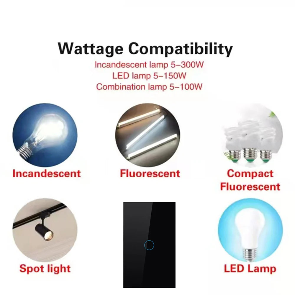 Interruptor Touch de Parede - Vidro Cristal Temperado com LED