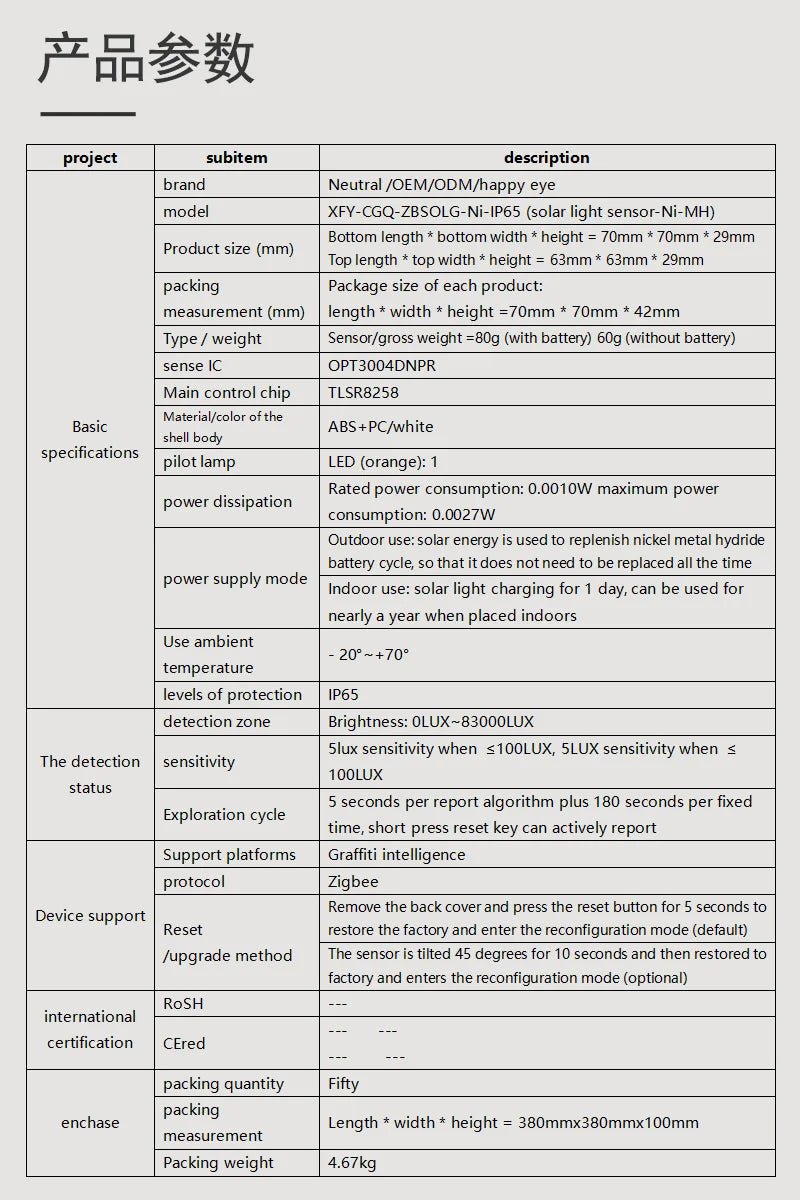 Sensor de Luz Solar Zigbee Tuya - IP65 À Prova D'Água com Detecção em Tempo Real