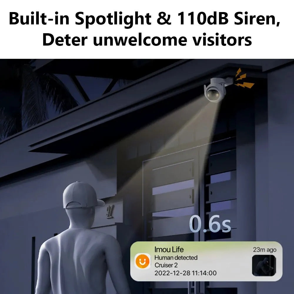 Câmera PTZ inteligente com resolução 3K, rastreamento automático por IA, detecção de humanos e veículos, visão noturna colorida e rotação 360°. Controle total via WiFi pelo app Imou Life com áudio bidirecional.