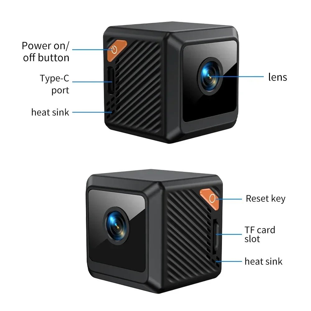 Câmera de segurança ultra compacta com resolução Full HD 1080P, bateria recarregável e conexão Bluetooth. Ideal para monitoramento discreto em ambientes internos, escritórios, quartos de bebê ou qualquer local que necessite de vigilância portátil.