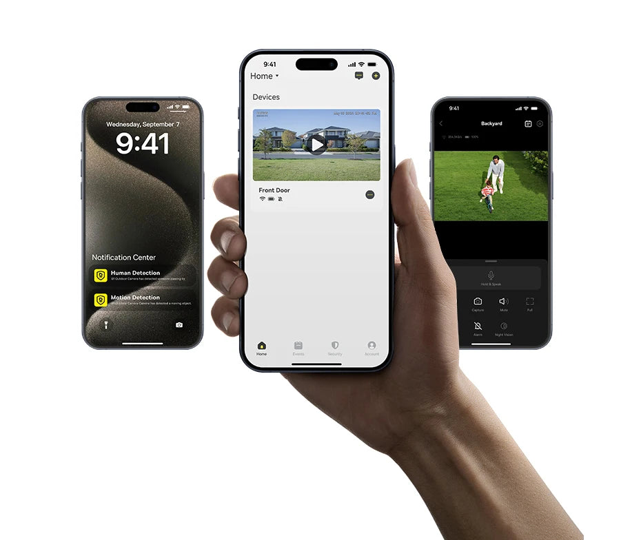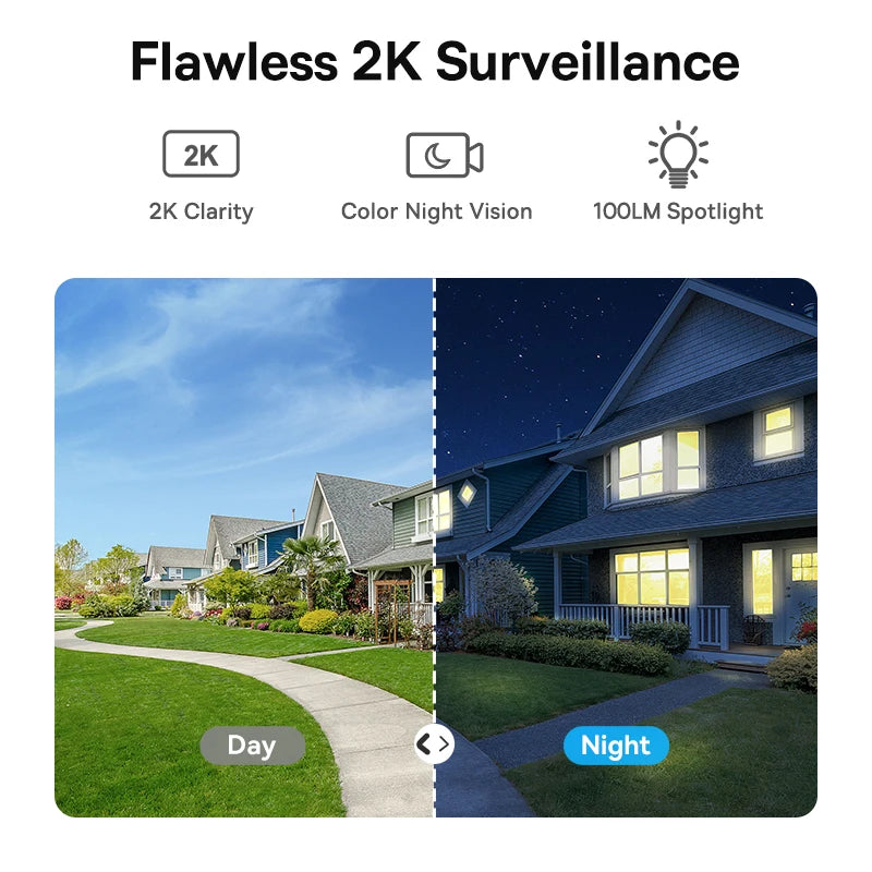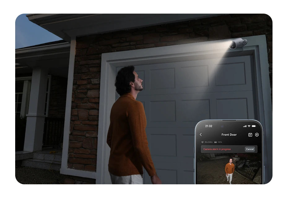- 🔵 Monitore entradas, garagens e quintais com uma única câmera