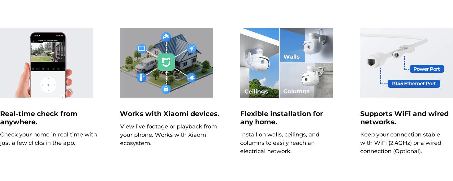 Iluminação e segurança em um só dispositivo! A IMILAB EC5 Floodlight combina câmera de segurança 2K com holofote potente de 400 lumens. Com rotação 360°, visão noturna colorida, rastreamento humano inteligente, alcance IR de 30 metros e sistema de dissuasão automática, oferece proteção completa com iluminação integrada.