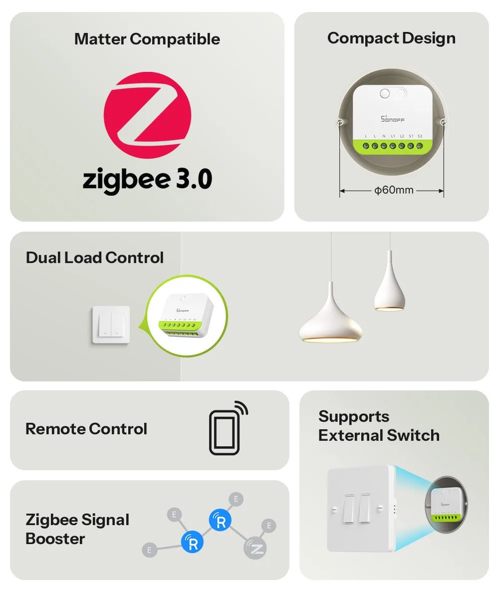 Interruptor Inteligente Zigbee 3.0 2 Gang - Ultra Compacto Controle Duplo