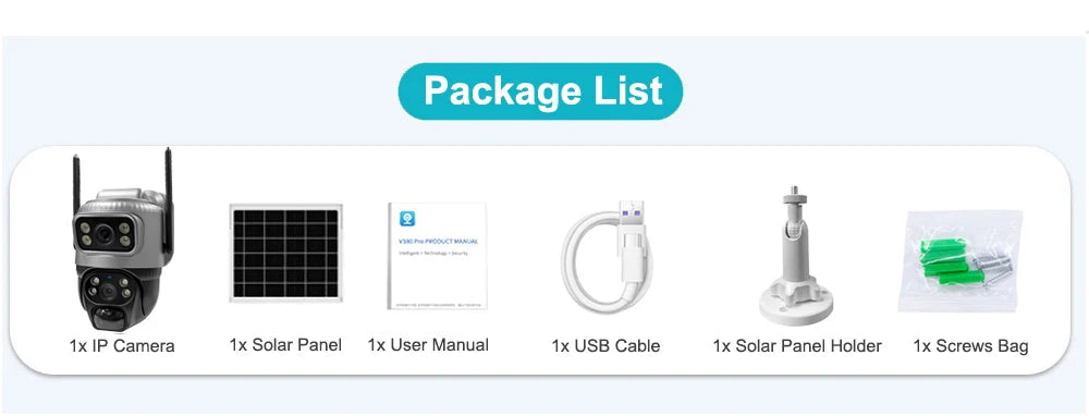 Vigilância 100% autônoma e sem fios! A câmera IP solar 4G V380 combina painel solar para energia sustentável, bateria 8000mAh de longa duração, conectividade 4G (sem WiFi necessário), lente dupla 8MP (4MP+4MP), movimento PTZ 355°/90°, detecção dupla PIR+Radar, detecção humana, visão noturna colorida, compressão H.265, proteção IP66 e app V380 para vigilância profissional totalmente autônoma.