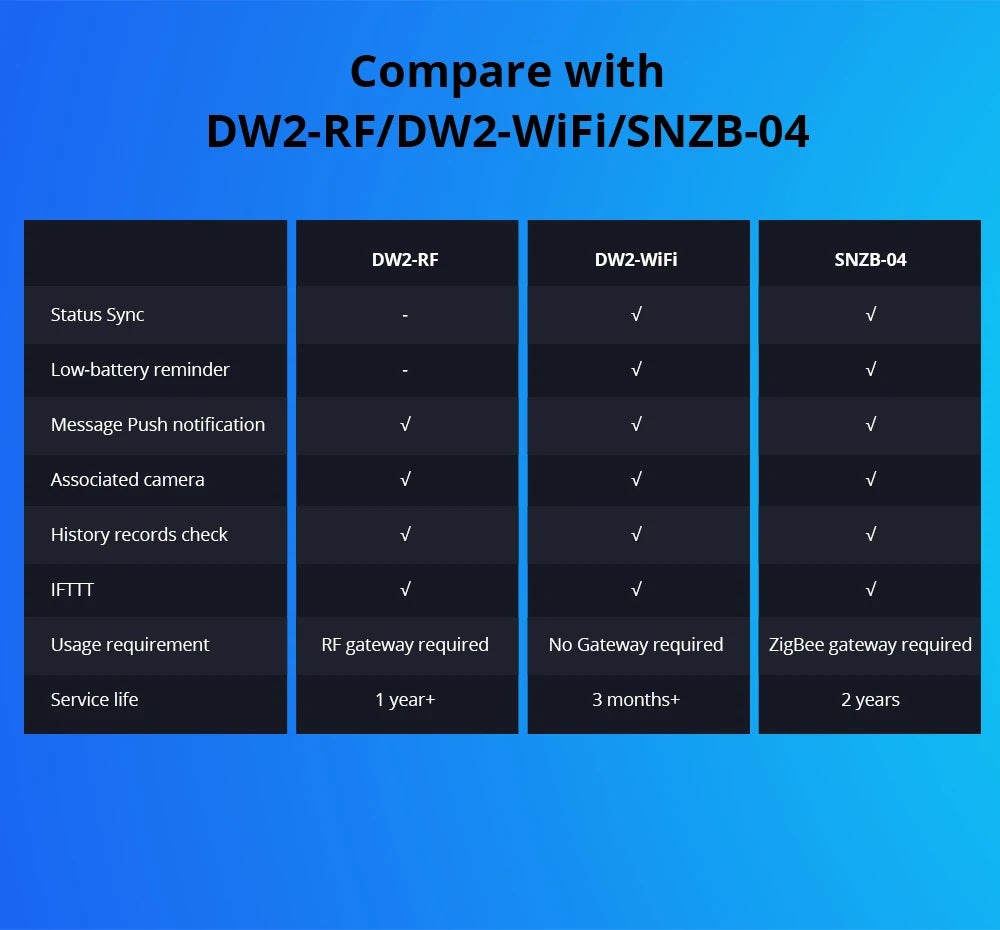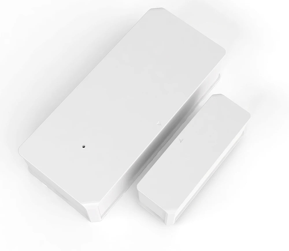 Sensor magnético sem fio para monitoramento de portas e janelas com tecnologia RF 433MHz. Funciona com ponte SONOFF RF e protocolo EV1527 para criar cenas inteligentes e aumentar a segurança da sua casa.