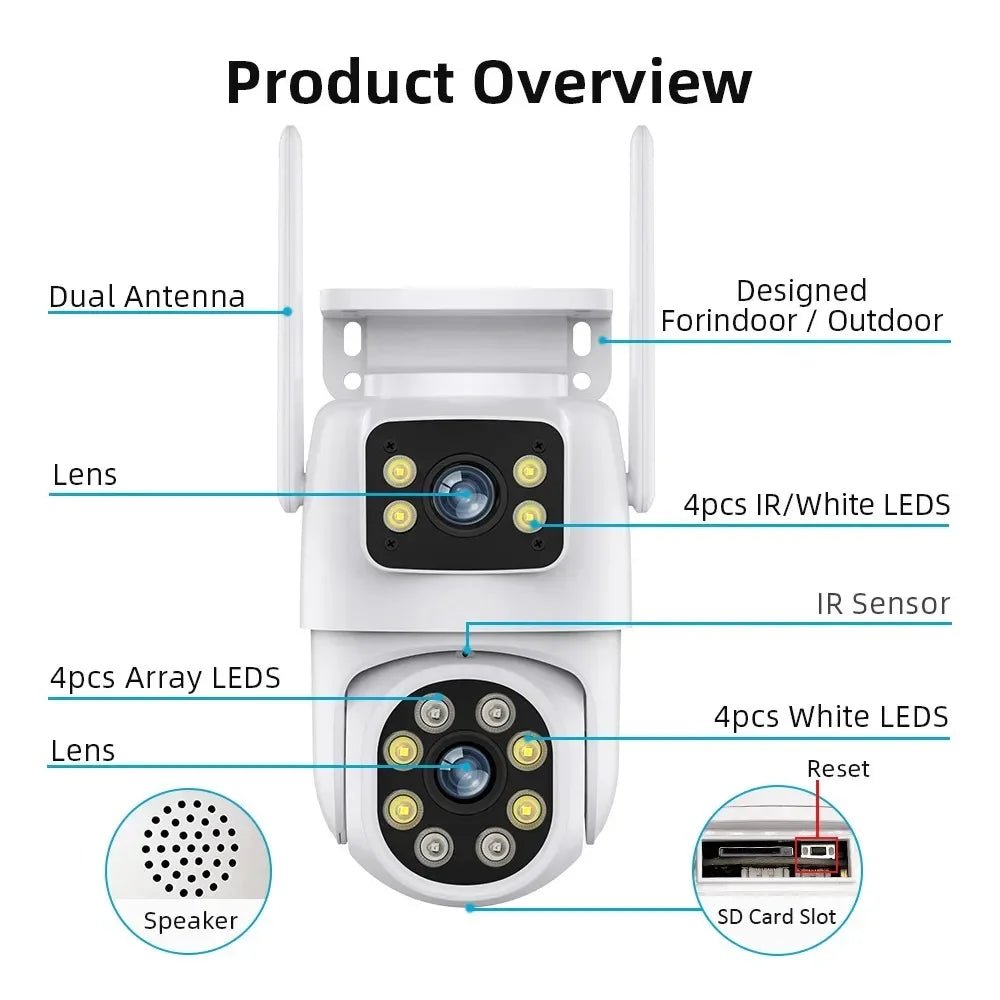 Câmera WiFi PTZ 10MP 4K - Lente Dupla com Rastreamento Automático e Detecção Humana IA