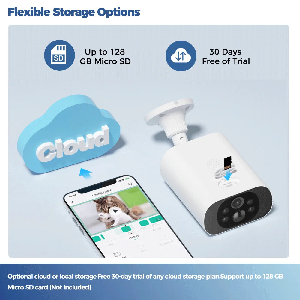 A ALEVIO 2.5K se destaca com sua combinação única de WiFi dual band 2.4GHz/5GHz para conexão superior, IA quádrupla que diferencia movimento, humanos, pets e carros, e zoom digital 10x - o maior do mercado. Com resolução 2.5K/4MP, sensor Sony CMOS, painel solar de 1.7W, bateria robusta de 5200mAh para autonomia ultra longa, PIR Smart Light, visão noturna colorida com alcance de 15 metros, áudio bidirecional HIFI, armazenamento interno de 128GB e proteção IP67 superior, você tem a solução mais completa e inteligente do mercado. Ideal para quem busca detecção avançada com autonomia total!
