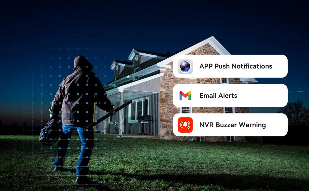 Perfeito para residências, chácaras, sítios, fazendas, comércios, lojas, galpões, estacionamentos, condomínios, escritórios e qualquer propriedade que necessite de vigilância profissional completa com múltiplos pontos de monitoramento, gravação centralizada e detecção inteligente.
