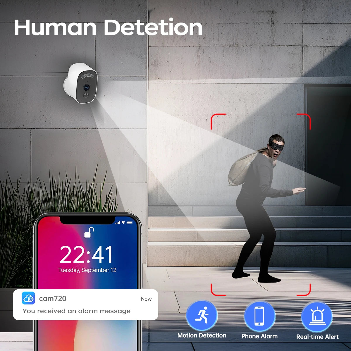 Câmera Solar Externa JOOAN 2K HD com Wi-Fi 2.4G, Vigilância Sem Fio, Detecção Humana e Vídeo Noturno Colorido com Áudio e Bateria
