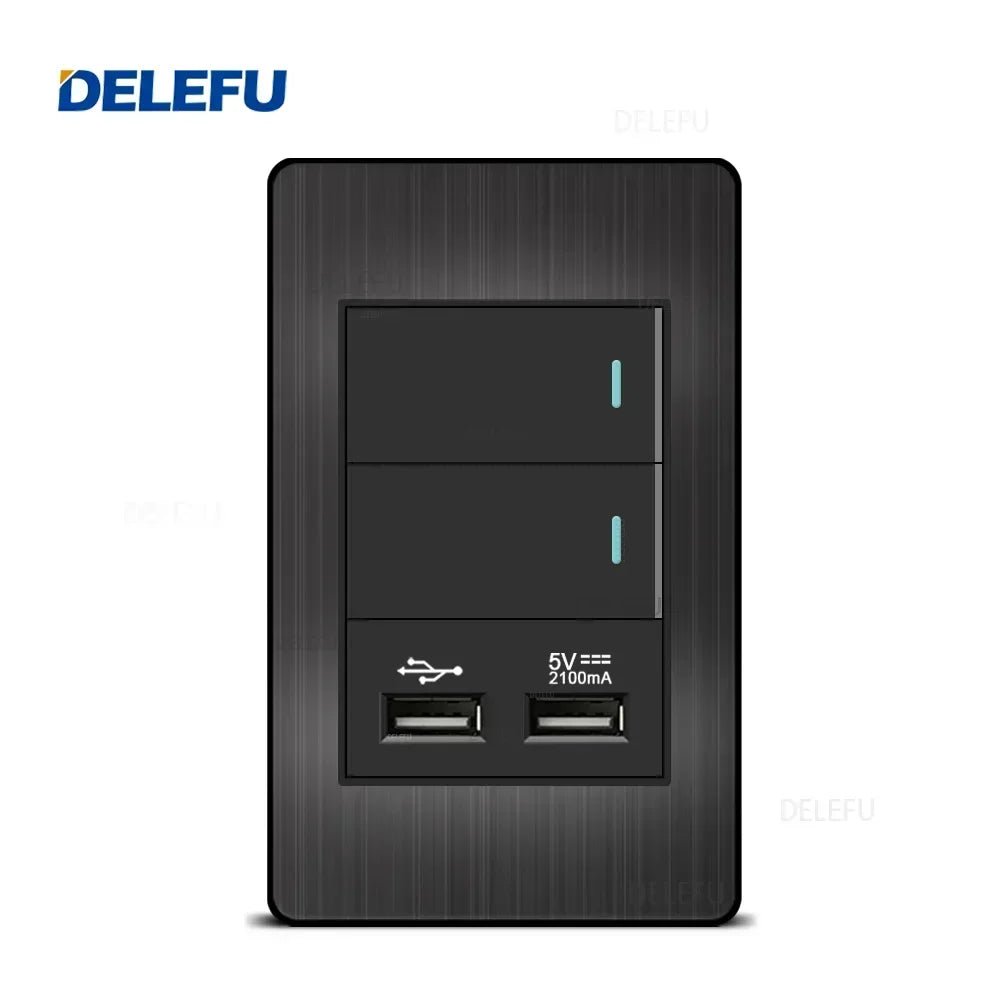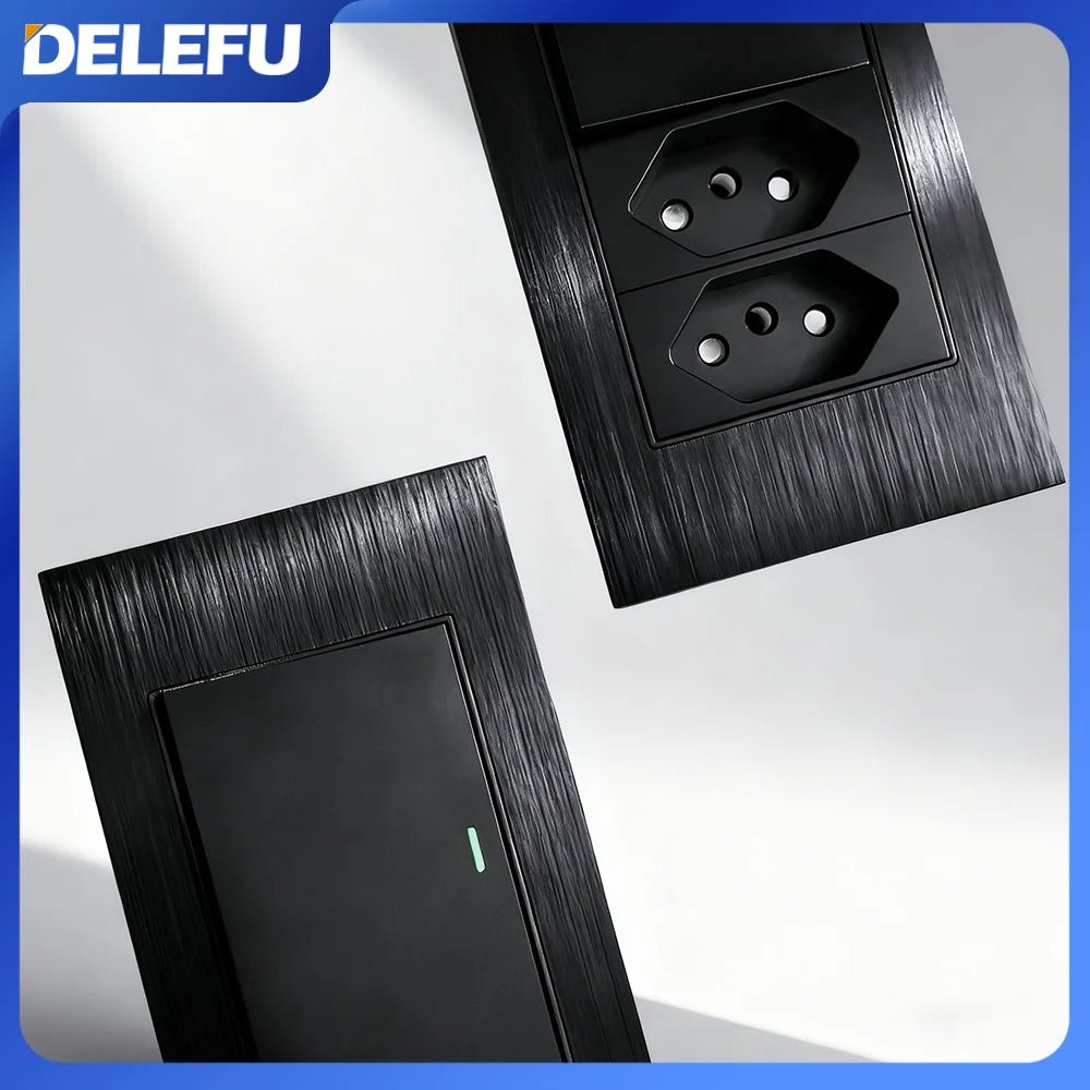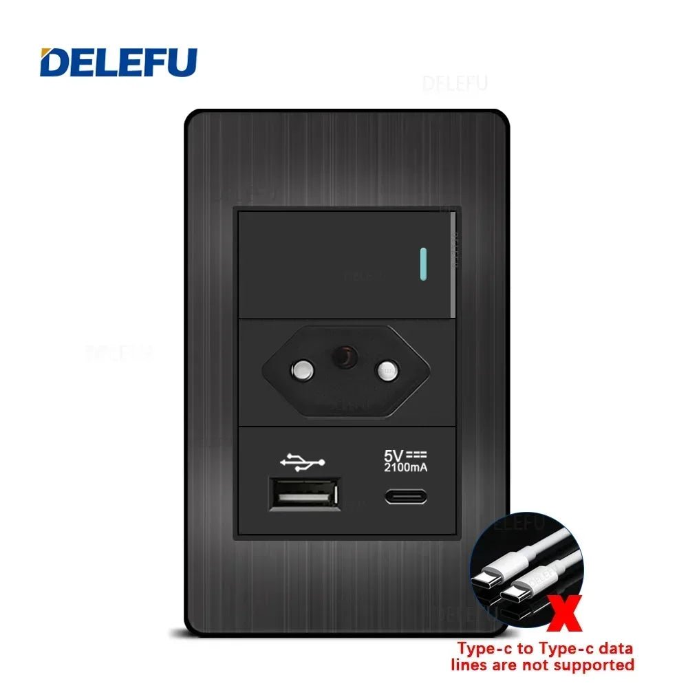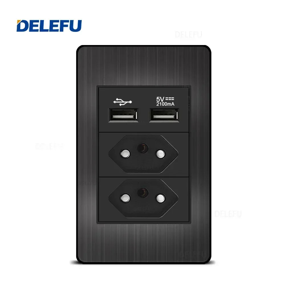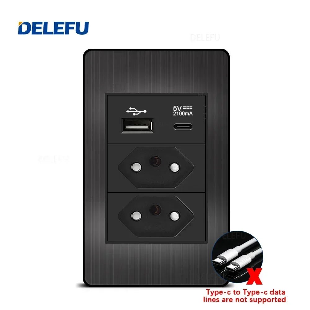 Interruptor e Tomada Padrão Brasileiro - Painel Aço Inox Preto com USB Tipo-C