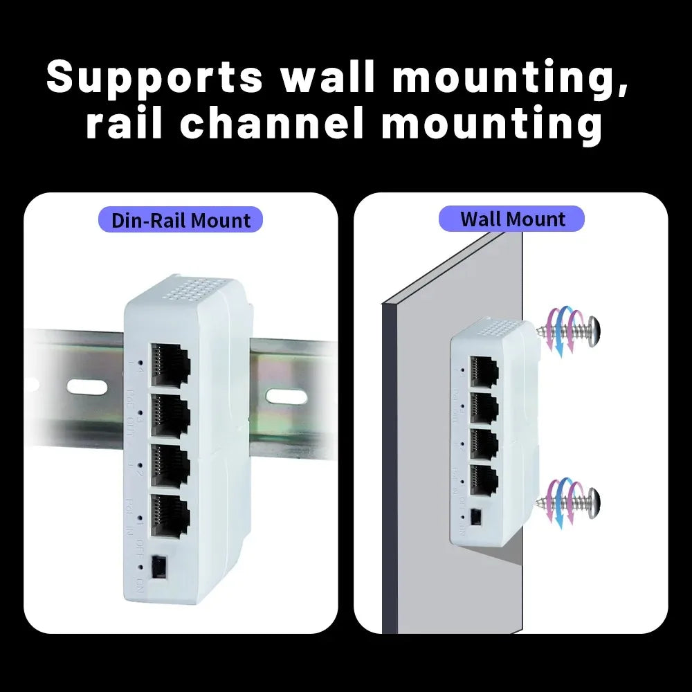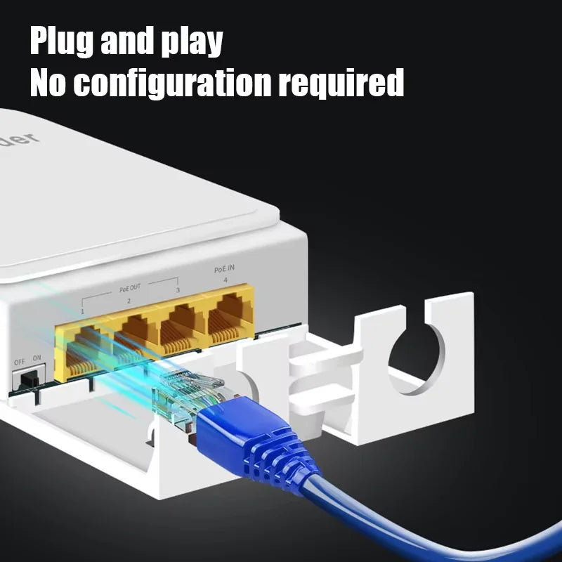 Extensor PoE 4 Portas Gigabit Repetidor IP55 - 100/1000Mbps VLAN 44-57V Externo Câmera Wireless AP
