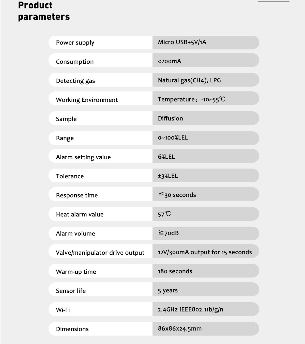 SPECIFICATIONSAPP: Tuya smart / Smart LifeCertificação: CEChoice: yesFeatures: Combustible Gas Leak AlarmNetwork: 2.4G WIFI , not 5GNome da marca: SECUGARDNúmero do modelo: WiFi Gas DetectorOrigem: CN (Origem)Plataforma de casa inteligente: tuyaProduto Químico de...